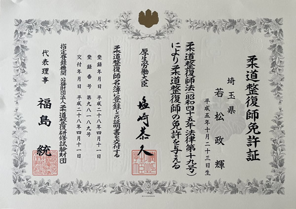 スポーツ中の骨折、脱臼、捻挫などの外傷に対して、応急処置からリハビリまで幅広く対応できる柔道整復師の国家資格を取得し、理想とする治療ができると確信しました。